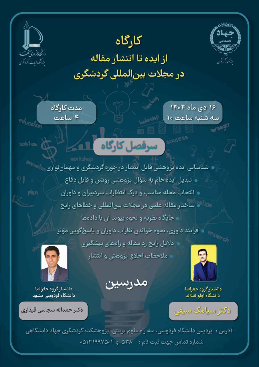 کارگاه از ایده تا انتشار مقاله در مجلات بینالمللی گردشگری